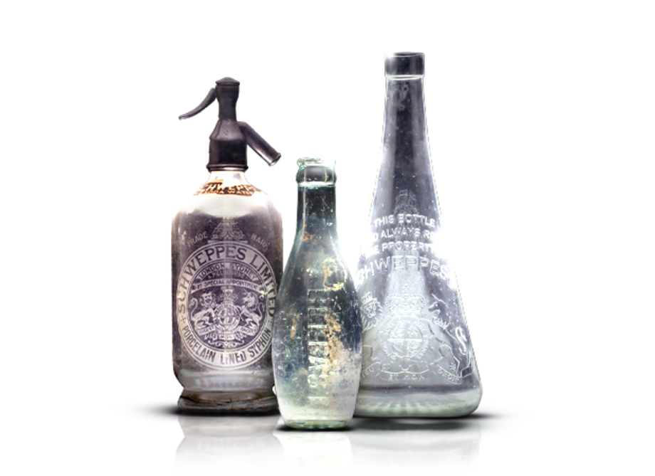 Die Geschichte von Schweppes begann bekanntlich im Jahre 1783. Seitdem sind mehr als 230 Jahre vergangen, in denen es viele Meilensteine für Schweppes gab. Nicht zuletzt auch bei den verwendeten Flaschen, in denen unsere feinperligen Sorten abgefüllt wurden. Die folgenden Flaschen haben die Schweppes Historie dabei ganz besonders geprägt.