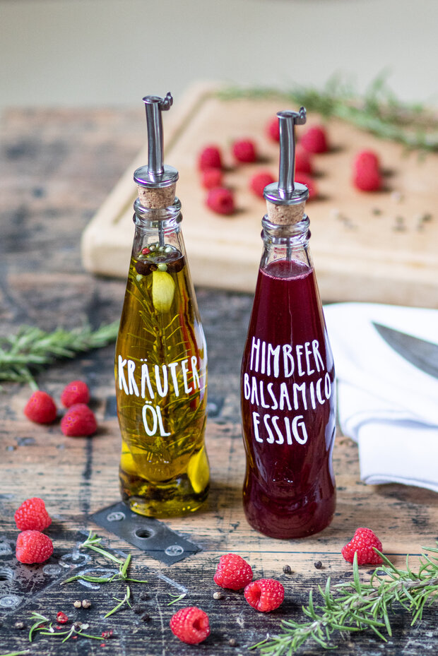 Die Schweppes Flaschen können auch als Gefäß für Flüssigkeiten wie Essig und Öl verwendet werden.