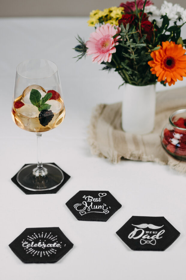 Die Untersetzer lassen sich mit den Vorlagen für jeden Anlass gestalten. Wie wäre es mit einer lieben Nachricht an die Mama oder den Papa? Eignet sich auch perfekt als Mutter- und Vatertagsgeschenk.