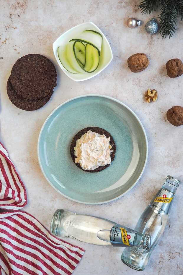 Lachs-Walnuss-Dip auf Pumpernickelbrot: