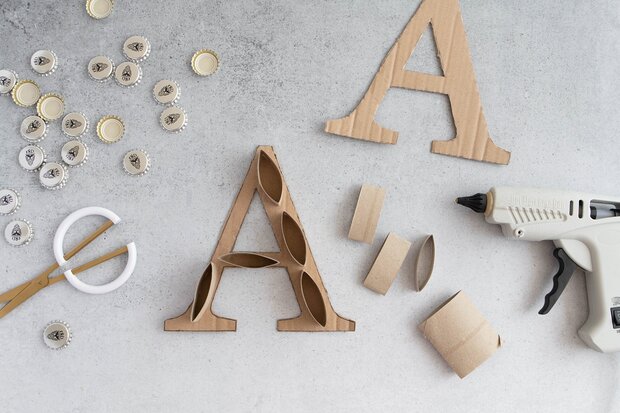 Upcycling: XL-Deko-Buchstaben mit Kronkorken basteln
