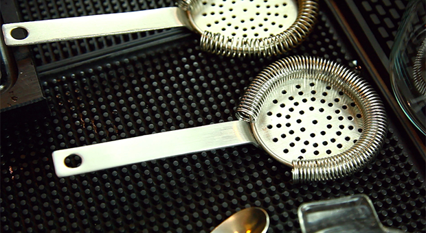 Dieses Barwerkzeug ist ein spezielles Sieb, um den fertig gemixten Drink ohne Fruchtstückchen sauber auszugießen (abseihen).