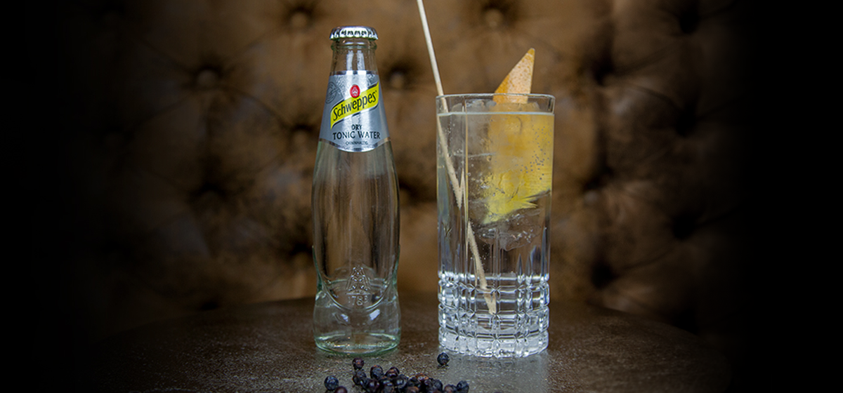 Zutaten: 4cl Gin, 16cl Schweppes Dry Tonic, Eiwürfel