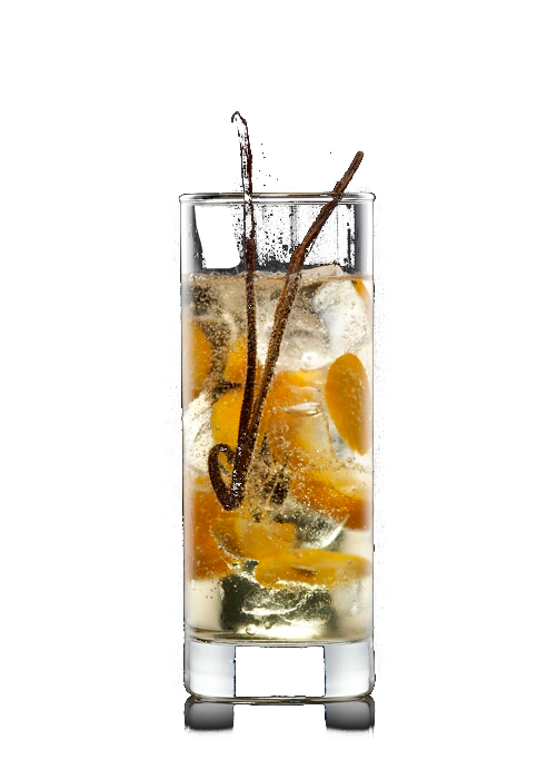 Vanillewodka in ein mit Eiswürfeln gefülltes Longdrinkglas geben und mit Schweppes American Ginger Ale auffüllen. Anschließend mit einer Vanilleschote und Orangenspalten garnieren.