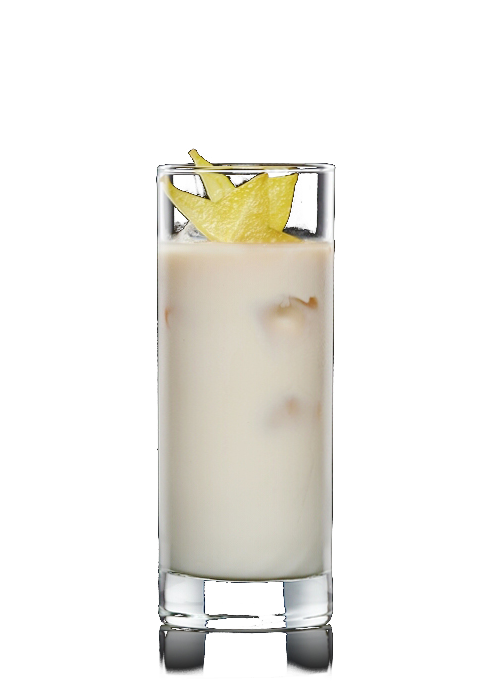 Rum, Zuckersirup, Milch, Crushed Eis und eine halbe zerdrückte Banane im Standmixer blenden und in ein Longdrinkglas geben.