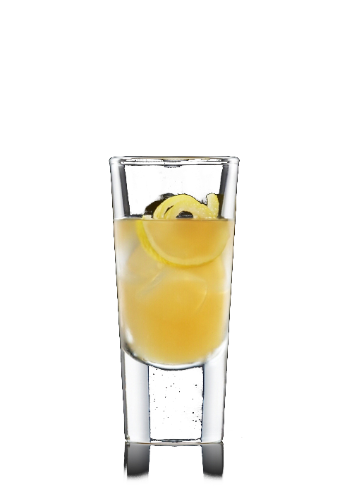 Die Zutaten mit einigen Eiswürfeln im Shaker kräftig schütteln und durch das Barsieb in ein Shortdrinkglas abseihen.