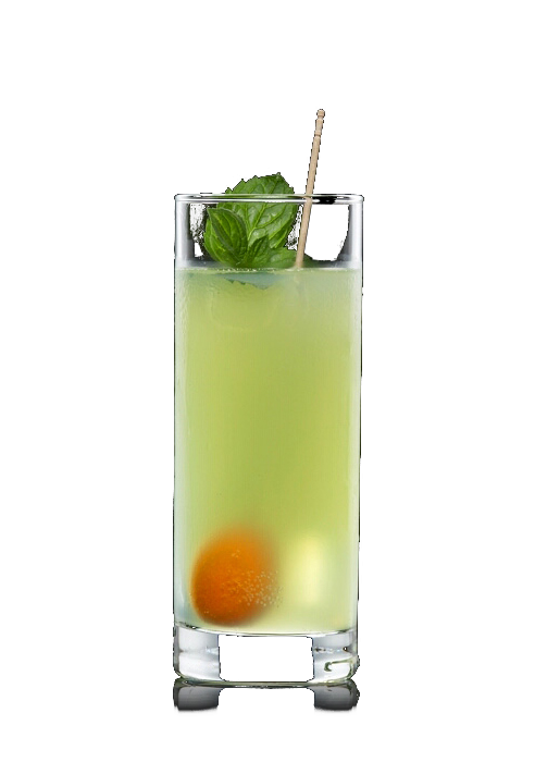 Alle Zutaten mit einigen Eiswürfeln im Shaker kräftig schütteln. Die Mischung durch das Barsieb auf weitere Eiswürfel in ein Longdrinkglas abseihen.