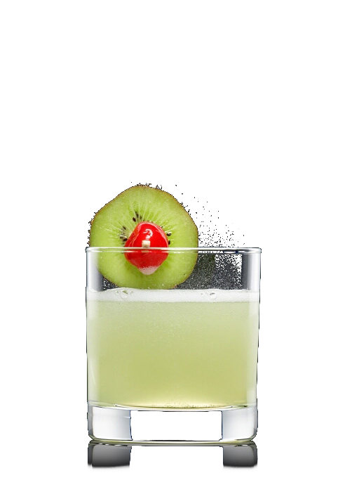Kiwilikör über einige Eiswürfel in ein Tumbler geben. Den Cocktail mit Schweppes Original Bitter Lemon und Sekt auffüllen und mit einer Kiwischeibe garnieren.
