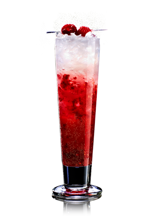 Die Himbeeren im Glas zerdrücken. Cranberrysaft und Zuckersirup hinzufügen und verrühren. Mit Schweppes Original Bitter Lemon und Crushed Ice auffüllen.