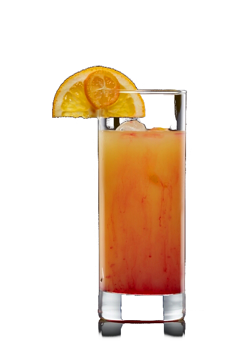 Alle Zutaten zusammen mit einigen Eiswürfeln in den Shaker geben, kräftig schütteln und durch das Barsieb auf weitere Eiswürfel in ein Longdrinkglas abseihen.